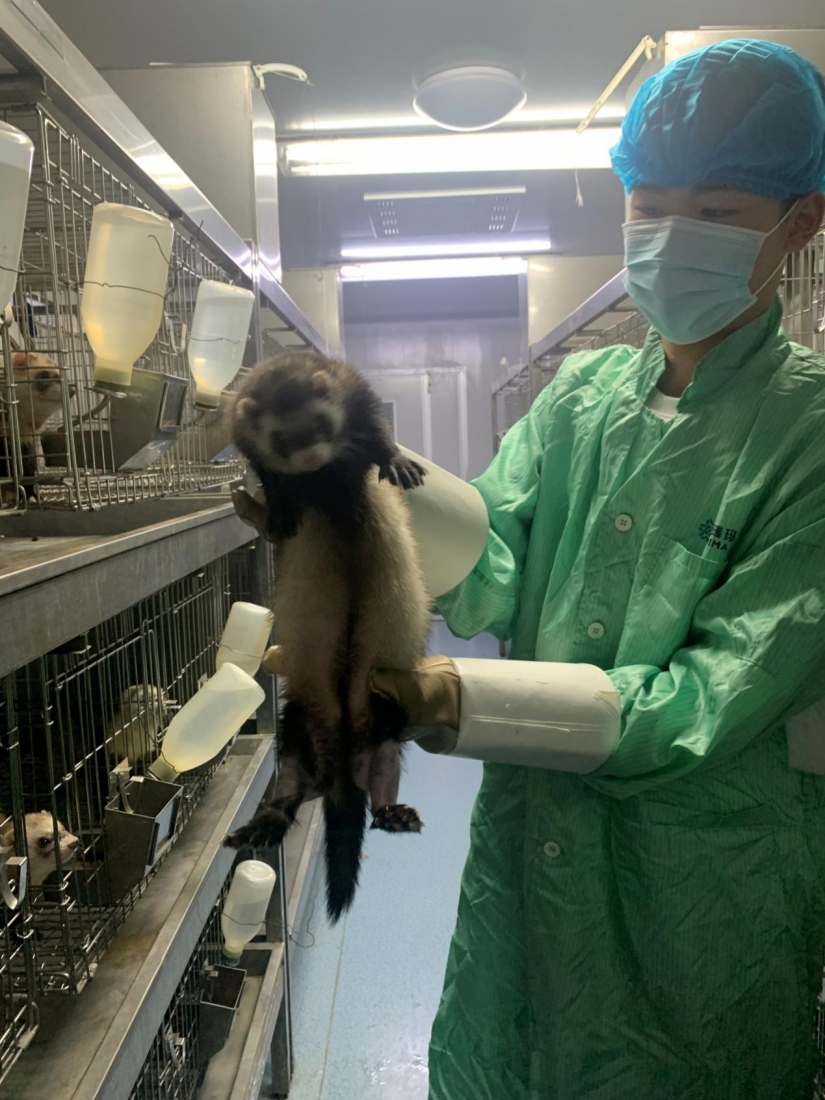二、普瑞瑪擁有湖南省首張雪貂實驗動物使用許可證 因為雪貂本身所具備的特質,它也漸漸成為了動物實驗領域的熱門選手,為醫藥研究做出了極大的貢獻。 目前,我公司已取得雪貂使用許可證。為了給雪貂提供一個良好的生活環境,保證雪貂健康成長,為以后的實驗數據做強有力的支撐,動物管理與技術部中動物組成員做了許多努力。前期查閱大量資料了解雪貂的生活習性,將雪貂在普瑞瑪的生存環境一比一還原,同時根據雪貂四季不同的生理周期對其居住環境進行不同的調整。最為主要的是雪貂是用于流感病毒研究,體內不能存在抗體,所以在實驗前后進入人員都必須進行嚴格消毒,減少干擾項。同時公司會定期檢測它們體內的病毒抗體水平,以保證雪貂沒有流感病毒抗體,才能用于流感病毒實驗。