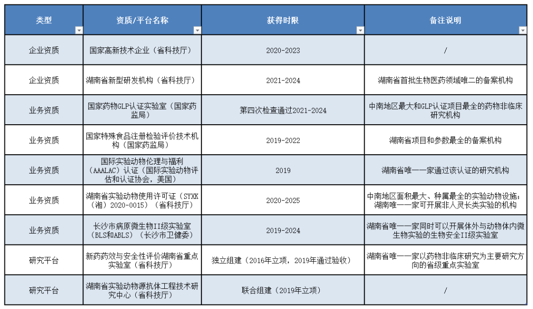 三、依托單位情況 依托單位湖南普瑞瑪藥物研究中心有限公司具有完善的研究資質(zhì)和科研平臺,有先進的硬件設(shè)施和穩(wěn)定的研發(fā)投入,在中南地區(qū)動物實驗疾病模型和藥物評價研究領(lǐng)域處于領(lǐng)先地位;公司占地68畝,建筑面積有3萬平米,有力支持和保障公司和團隊未來的發(fā)展。目前企業(yè)現(xiàn)有的資質(zhì)、平臺如下: