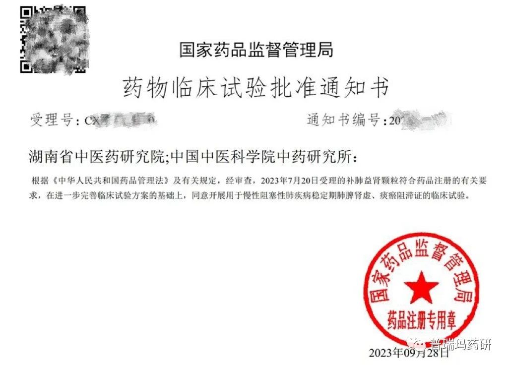 喜報 | 普瑞瑪助力1.1類補肺益腎顆粒獲得臨床批件