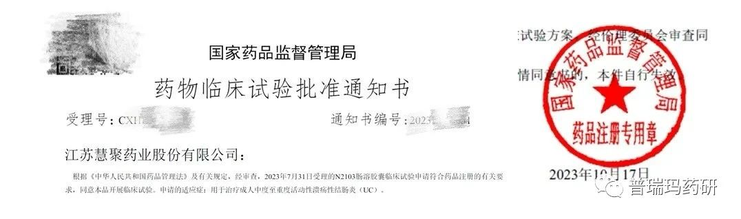 近日,湖南普瑞瑪藥物研究中心有限公司與江蘇慧聚藥業股份有限公司共同開展的改良新藥N2103腸溶膠囊非臨床研究工作,順利獲得國家藥品監督管理局核準簽發的臨床試驗默示許可(受理號:CXHL2300841,CXHL2300842)。 N2103腸溶..
