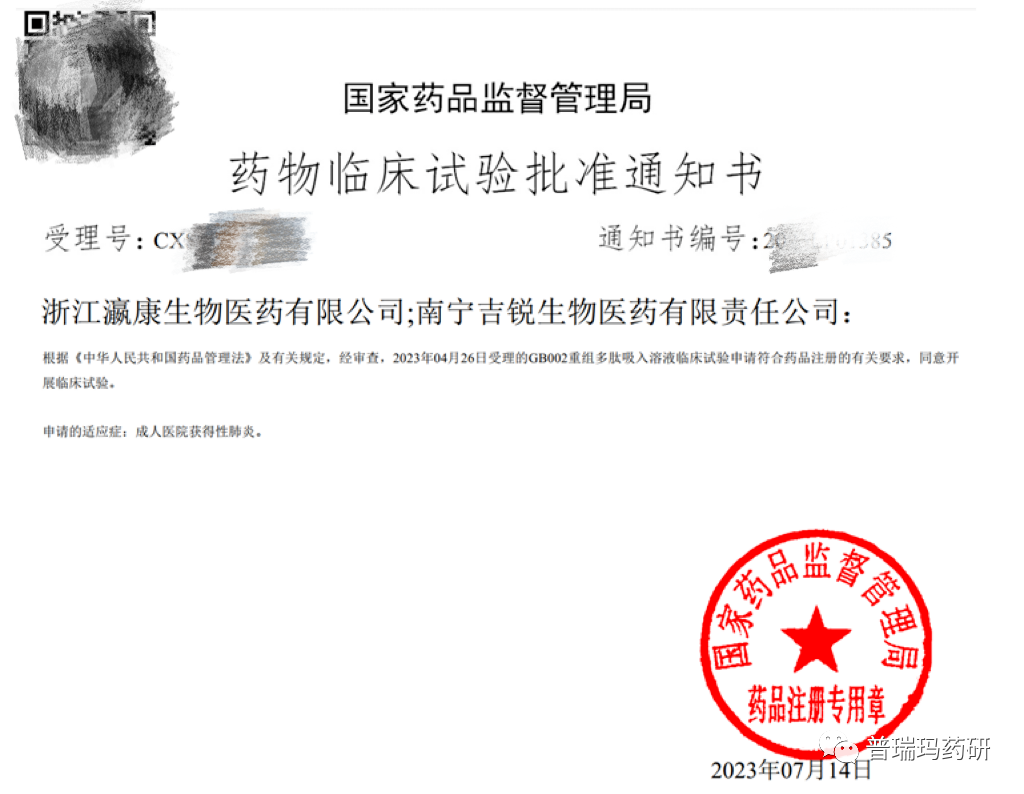 普瑞瑪助力 | 湖南普瑞瑪重組多肽吸入溶液助力感染性藥物注冊(cè)獲批