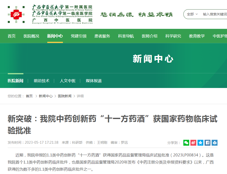 近期,廣西中醫(yī)藥大學(xué)第一附屬醫(yī)院申報(bào)的1.1類中藥創(chuàng)新藥十一方藥酒獲得國(guó)家藥品監(jiān)督管理局臨床試驗(yàn)批準(zhǔn)(2023LP00834)。湖南普瑞瑪作為非臨床研究單位,獨(dú)立承擔(dān)了十一方藥酒的毒理學(xué)研究,為十一方藥酒的安全性提供循證依據(jù)。 十一方藥酒是由廣西中醫(yī)藥大學(xué)第一附屬醫(yī)院自主研發(fā)、具有地方特色、享譽(yù)省..