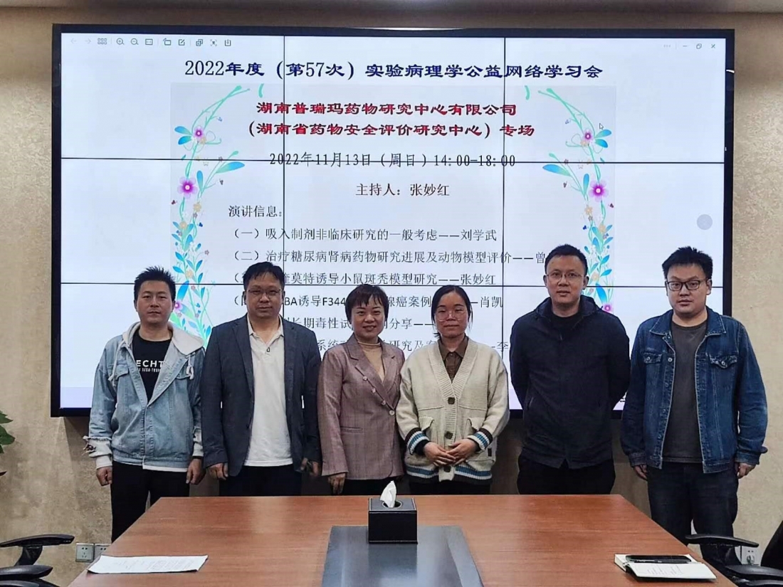 11月13日下午,由公司承辦的2022年度(第57次)實驗病理學公益網絡學習會歷時5個多小時順利結束了。此次會議根據疫情防控要求,利用騰訊會議網絡系統開展。公司藥物評價部、藥理研究部、病理臨檢部和醫療器械評價部6位科研骨干做了專題報告,報告主題圍繞藥物臨床前毒理、藥效學、實驗動物模..